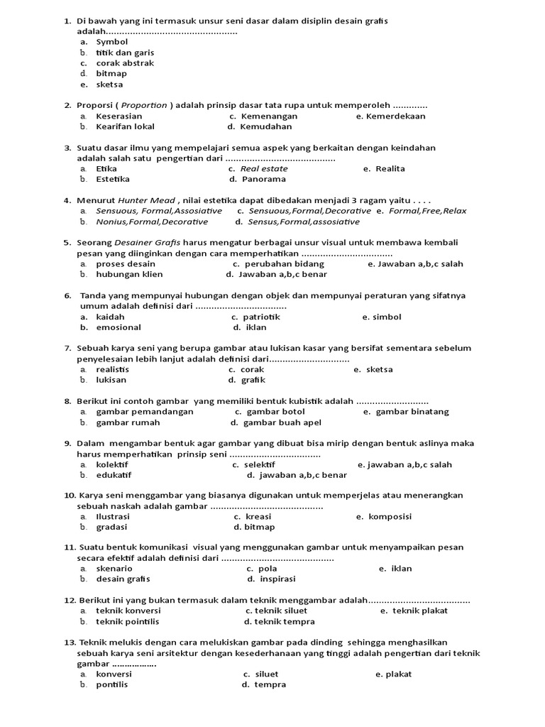 Free Pdf 40 Contoh Soal Dasar Desain Grafis Beserta Jawabannya Kelas 10 Semester 2 Templatekita Com from 1.bp.blogspot.com Maybe you would like to learn more about one of these? Soal dan jawaban dasar desain grafis. We did not find results for: Check spelling or type a new query.