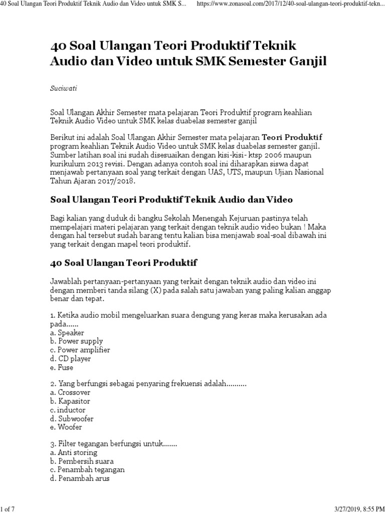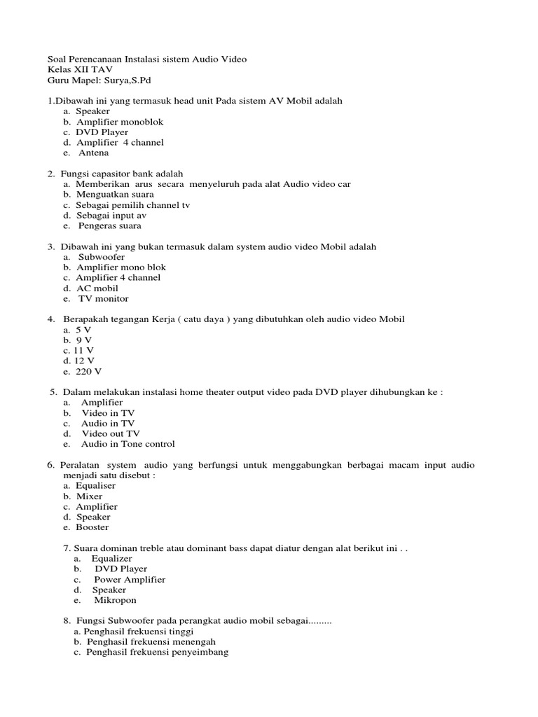 Soal Pilihan Ganda Teknik Audio Video Kurikulum K13 Teknik Mekatronika from tm.smkn1bawang.sch.id Soal dan jawaban teknik audio video kelas 11. Maybe you would like to learn more about one of these? Check spelling or type a new query. We did not find results for: