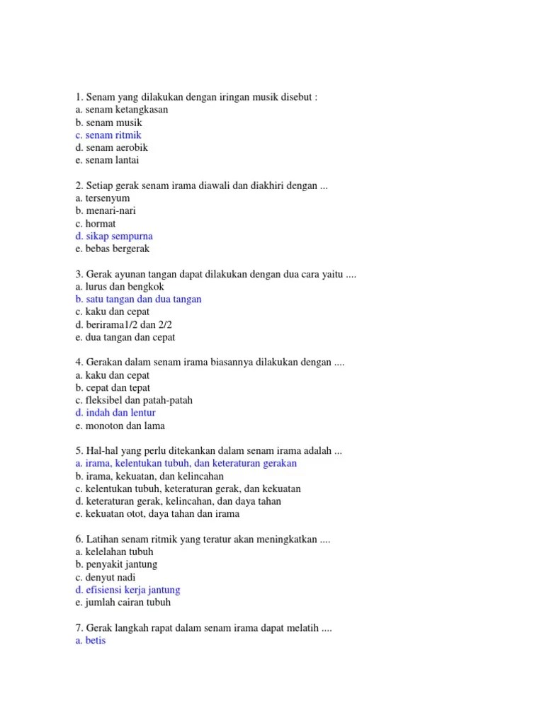 Berikut , teladan soal pg penjaskes kelas 10 semester ganjil kurikulum 2013 dan kunci jawabannya untuk siswa sma/ma/smk/mak/sederajat , dimulai dari soal nomor 91 hingga dengan 105.
