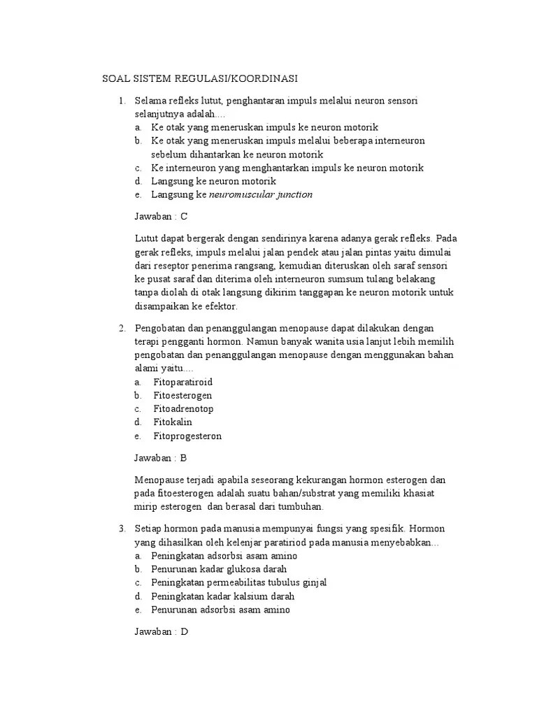 Rangsang » reseptor »saraf sensorik » otak » saraf motorik » efektor » gerakan. Semoga sanggup menjadi materi berguru untuk menambah wawasan dan latihan. soal sistem koordinasi, kelas xi sma. Untuk jenis soal bab perpajakan ini terbagi menjadi 3, yaitu soal pilihan ganda, soal essay, dan soal uraian. (1) memiliki belahan kiri dan kanan. Doc soal sistem endokrin muh ibnusabil academia edu. Juga soal dan pembahasan jaringan saraf essay ini dilengkapi dengan pembahasan singkatnta. Semoga bisa menambah pemahaman kamu tentang sistem saraf manusia. Di bawah ini kan dijelaskan mengenai sistem saraf kranial dan sistem saraf otonom, yaitu : Berikut ini yang merupakan bagian dari sistem saraf pusat adalah. Semoga contoh soal pilihan ganda sistem saraf untuk smp disertai jawabannya ini memberikan manfaat yang banyak. Urutan jalannya rangsang pada gerak biasa adalah…. Aug 29 2020 soal dan jawaban fisiologi hewan.